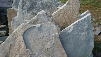 Description: A wall stone with blue/grey | tan | brown and earth tones